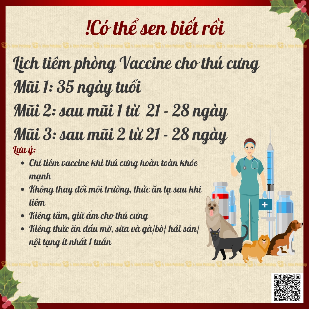 – Sau khi tiêm xong cần chăm sóc chó tốt hơn, kiêng tắm; Kiêng thức ăn có chứa nhiều mỡ, sữa, đồ tanh ít nhất là 1 tuần.