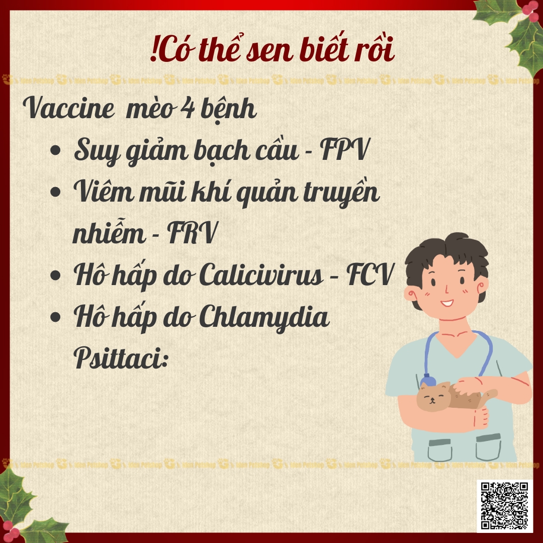 Vaccine phòng 4 bệnh trên mèo bao gồm: